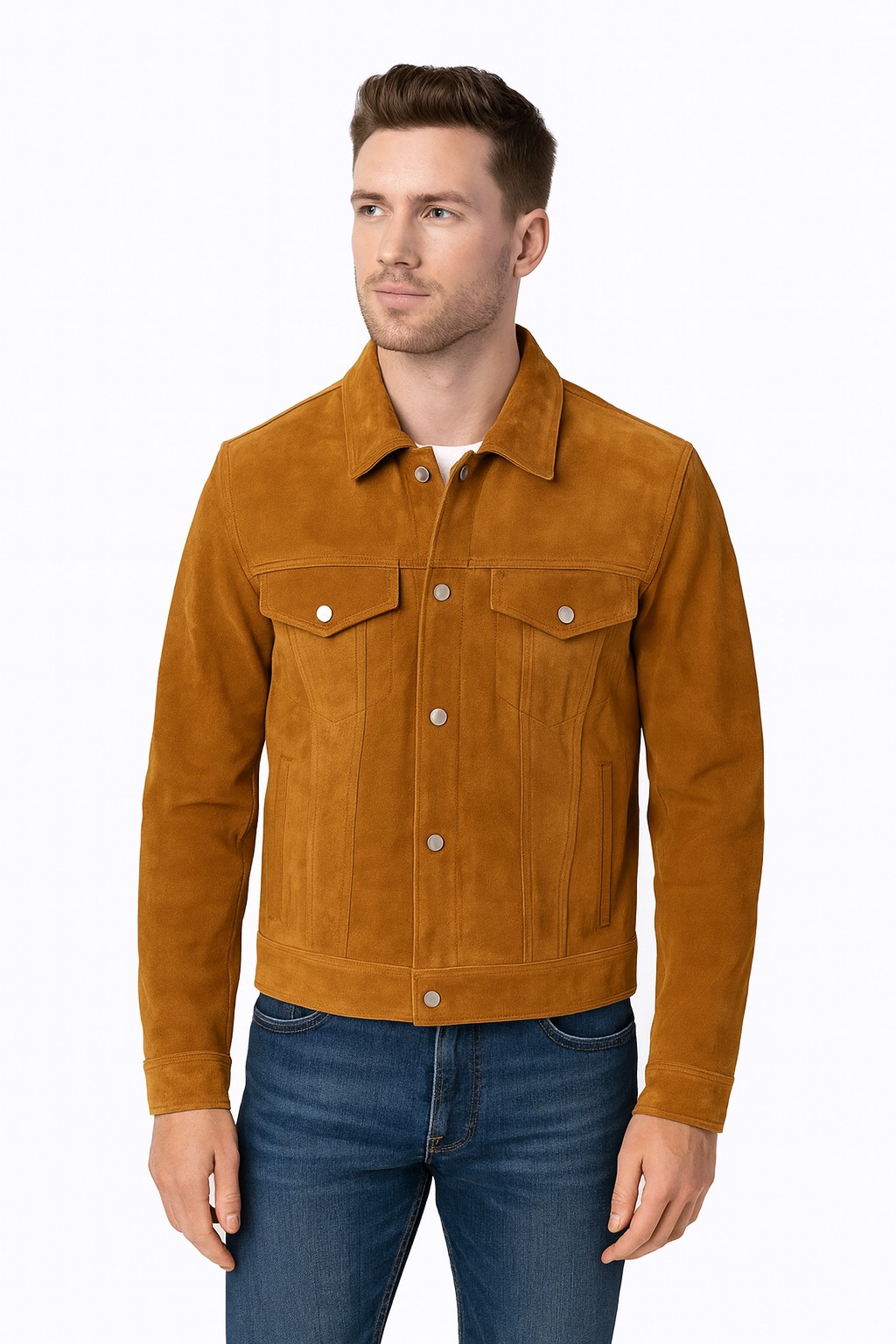 Elevate your everyday style with this timeless tan suede jacket, tailored for the modern man. Crafted from premium suede leather, it features a structured button-up front, dual flap chest pockets, and a clean-cut silhouette. Perfect for both casual and semi-formal occasions, this jacket delivers comfort, durability, and vintage flair in one sleek design. Ideal for layering year-round.