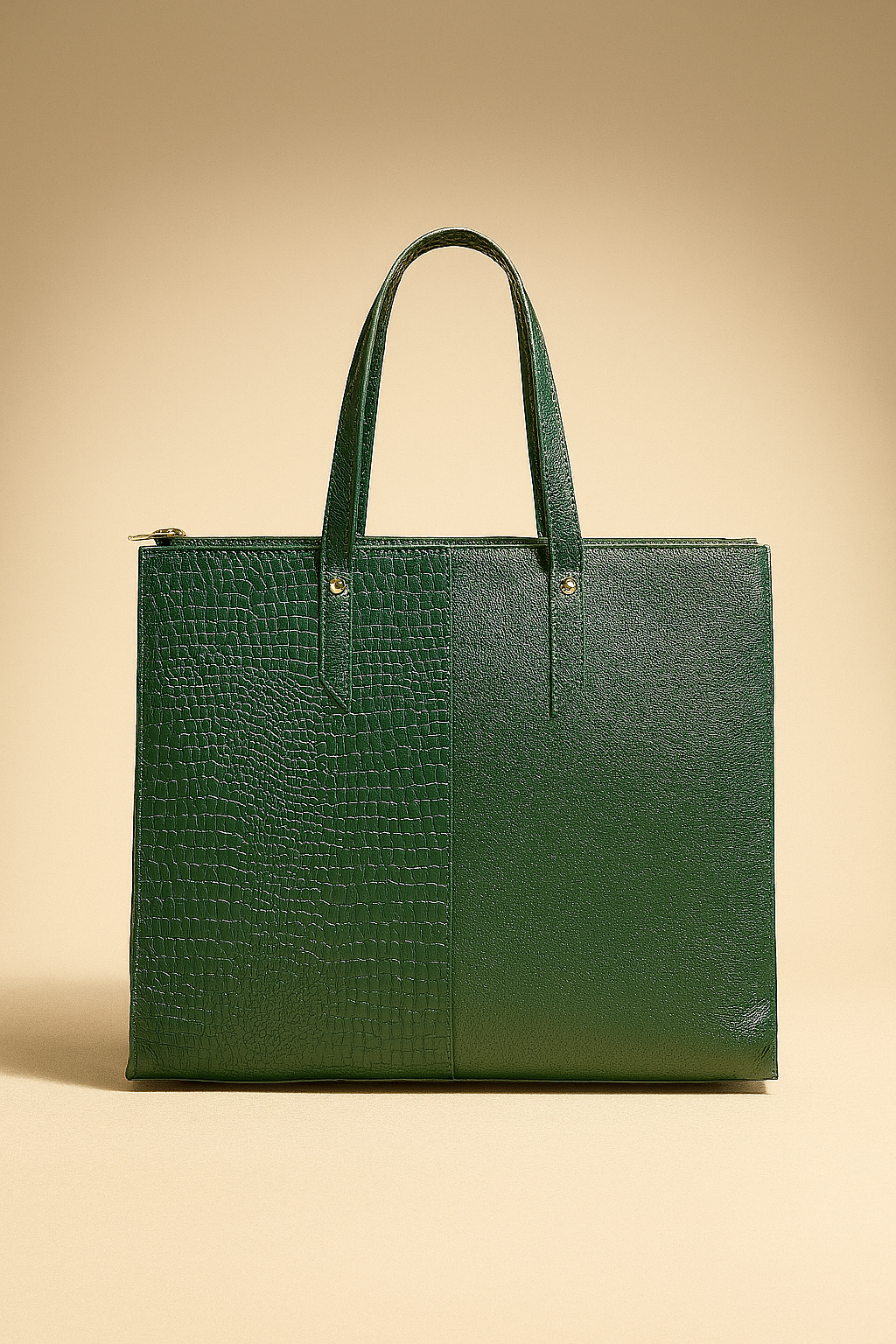 This emerald green ladies handbag combines modern minimalism with a touch of luxury. Crafted from premium leather with a half-and-half design featuring smooth and crocodile-embossed textures, it offers a striking yet elegant look. The structured silhouette ensures it holds its shape, while dual top handles provide comfortable carrying. Perfect for work, shopping, or casual outings, this tote offers ample space for all your essentials while making a bold style statement.
