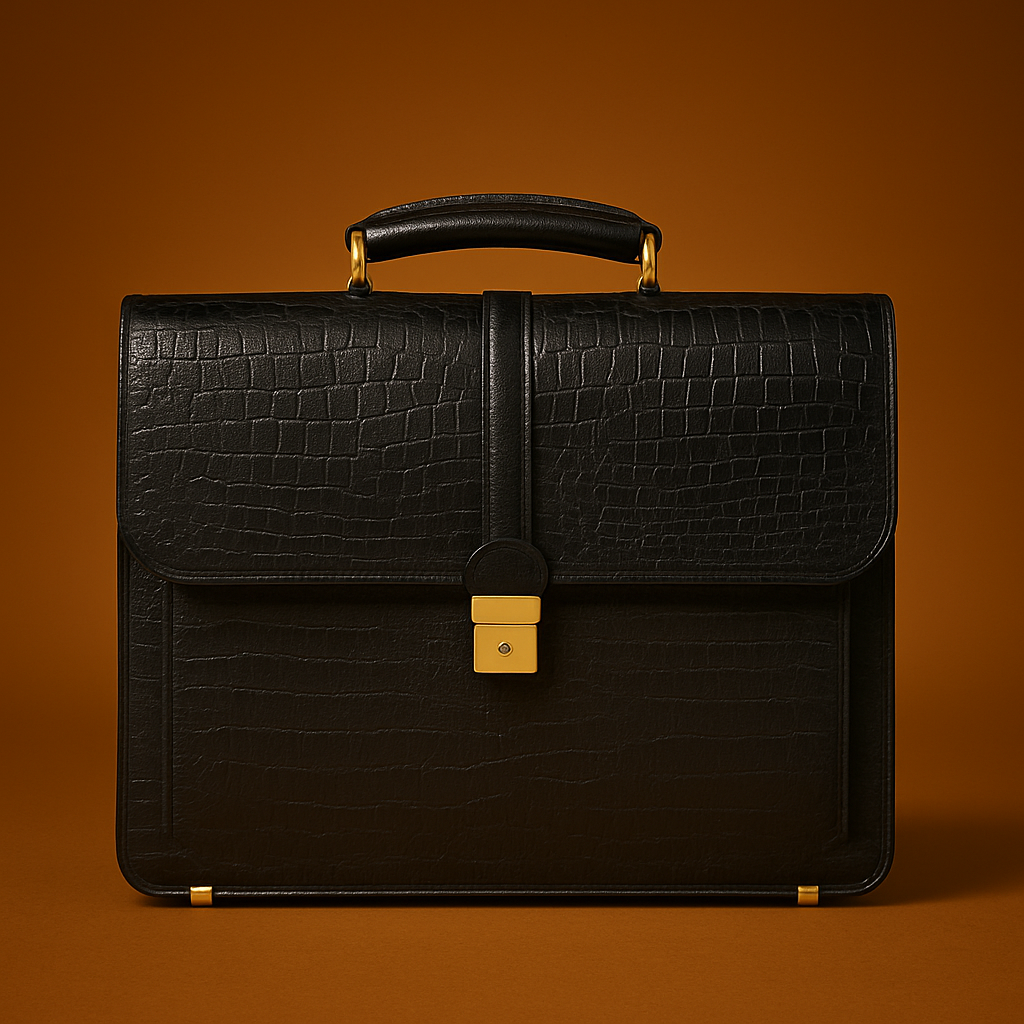 Exude confidence and class with this luxury black leather laptop briefcase, designed for the modern professional. Made from premium leather with a refined crocodile texture, it features a secure gold-tone lock closure, a sturdy padded handle, and reinforced corners for durability. The spacious interior keeps your laptop and documents neatly organized, while its sleek design makes it perfect for boardrooms, business travel, and high-profile meetings.