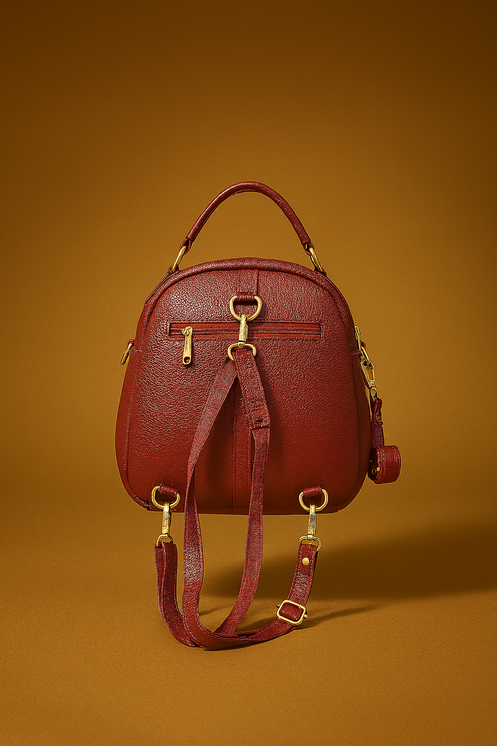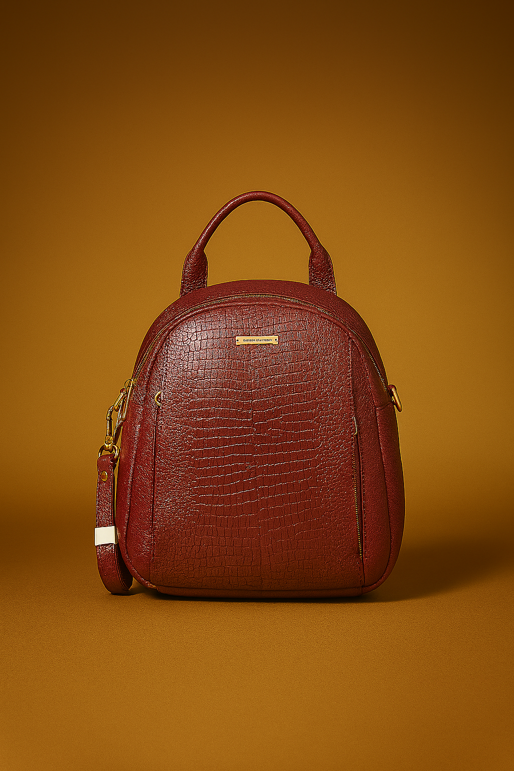 This maroon mini pithu bag combines chic design with everyday convenience. Made from high-quality leather with an elegant crocodile texture, it features gold-tone hardware, a smooth top zipper closure, and dual top handles for easy carrying. The compact yet spacious interior is perfect for keeping essentials organized, while the adjustable straps allow comfortable wear as a backpack or sling. A stylish choice for casual outings, travel, or daily use.