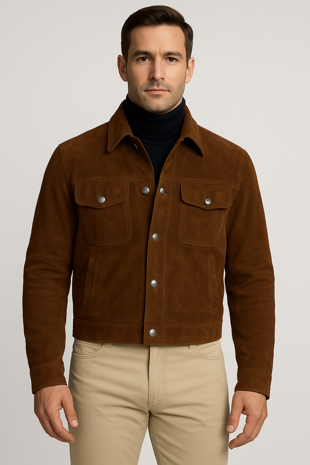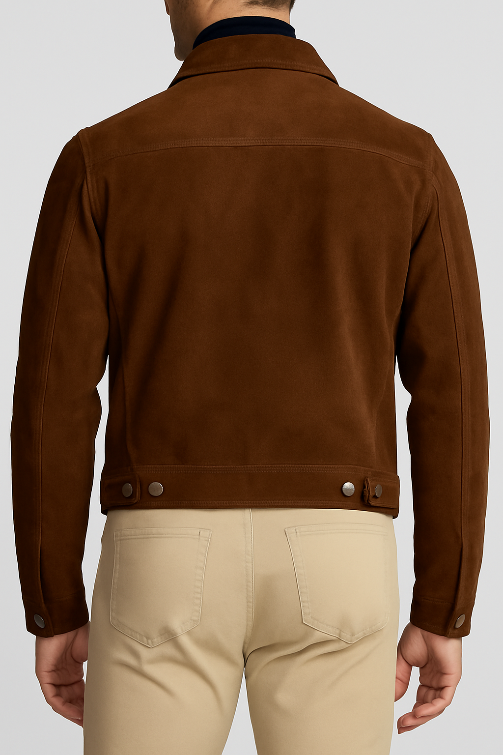 Men’s Classic Brown Suede Trucker Jacket – Smart & Timeless