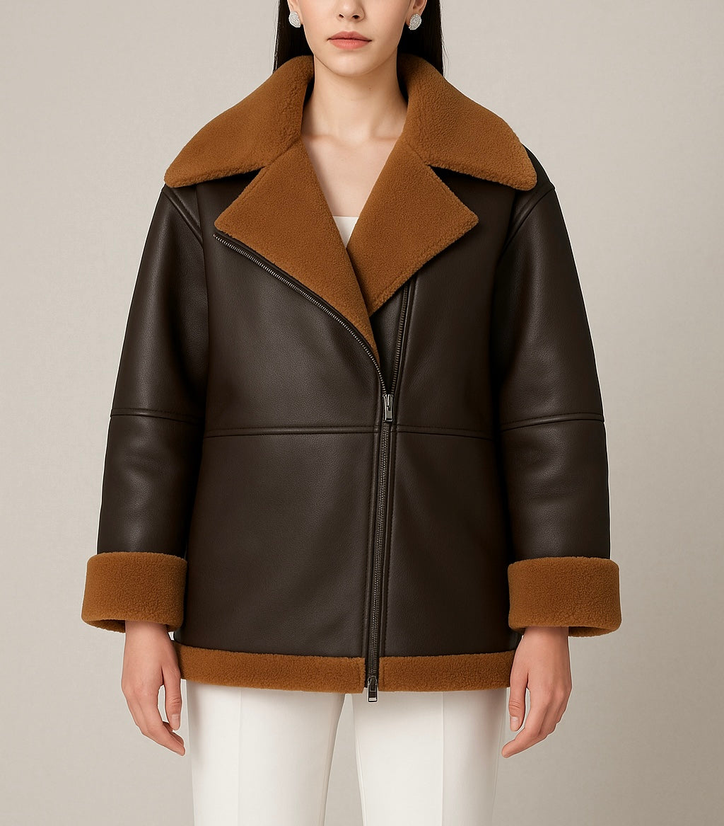 Women’s Dark Brown Shearling Aviator Leather Jacket