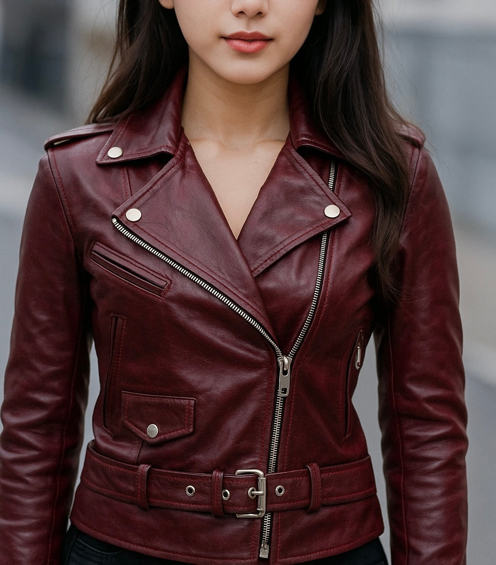 Stand out in style with this women’s burgundy leather biker jacket, designed for those who want a bold, edgy look with a touch of sophistication. Crafted from premium leather, the jacket features a deep burgundy finish that makes it a versatile piece for both casual outings and evening wear.